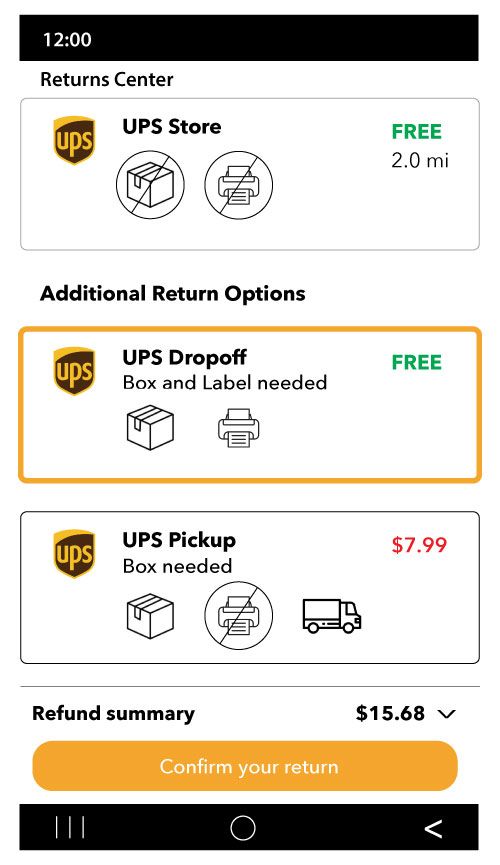 We can still assist. Please cancel your return, select one of the highlighted return options (see below) to avoid fees